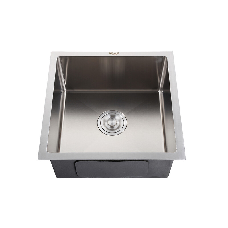 MELANA. Мойка нерж врезная 440х440х220 т 3,0 САТИН R4444Н (+ сифон) AISI 304