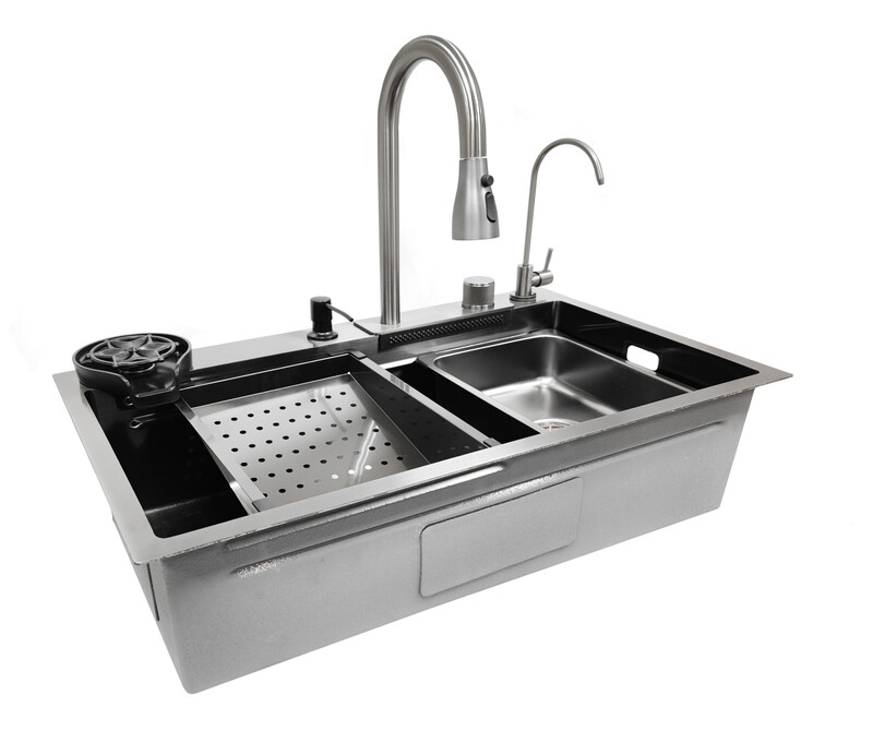 Мойка нерж врезная 800х450х220 т3,0 ГРАФИТ HB8045FB +6 (+ сифон) SANTREK AQUA + Подарок (Колландер, фруктов, доска, 2 смесителя, ополаск) АКЦИЯ !!!