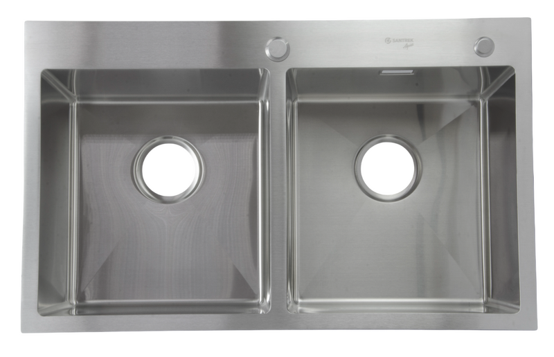 Мойка нерж врезная SANTREK AQUA PRO 780х480х220 т 3,0 ДВОЙНАЯ САТИН D7848HDS (+ сифон +дозатор) + КОЛАНДЕР 420х220 В ПОДАРОК!!!