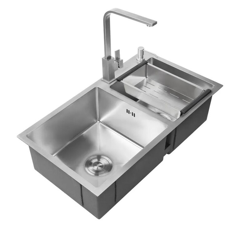 Avina. Мойка нерж врезная 780x480х230 т (3,0+1.2mm) сатин НМ 7848/1,5 1,5 чаши (+ сифон, колландер, дозатор мыла) AISI 304