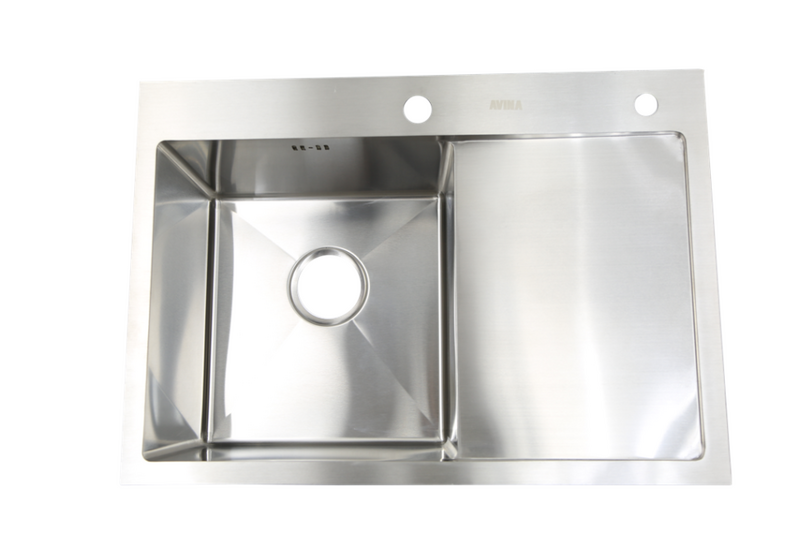 Avina. Мойка нерж врезная 680x480х230 т (3,0+1.2mm) сатин НМ 6848 L левая (+ сифон, колландер, дозатор мыла) AISI 304