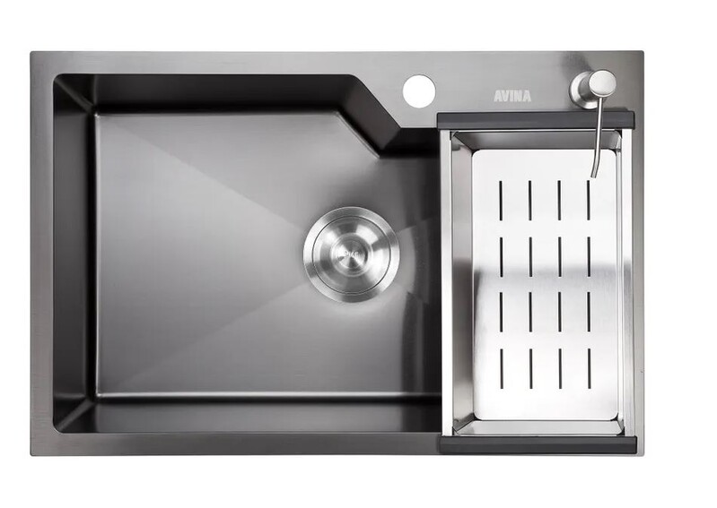 Avina. Мойка нерж врезная 650x480х230 т (3,0+1.2mm) черная НМ 6548 S (+ сифон, колландер, дозатор мыла) AISI 304