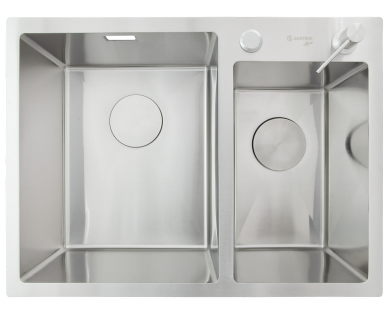Мойка нерж врезная SANTREK AQUA PRO 650х480х220 т 3,0 1,5 ЧАШИ САТИН D6548HDS (+ сифон +дозатор) + КОЛАНДЕР 460х220 В ПОДАРОК!!!