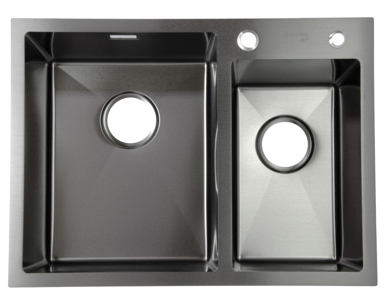 Мойка нерж врезная SANTREK AQUA PRO 650х480х220 т 3,0 1,5 ЧАШИ ГРАФИТ D6548HDB (+ сифон + дозатор) + КОЛАНДЕР 460х220 В ПОДАРОК!!!