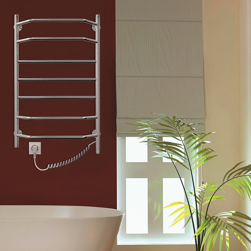 Электрический полотенцесушитель изготавливается по ТУ 3468¬001¬73870861¬2007 из высококачественной нержавеющей стали марки AISI 304, устанавливается на стене на специальных кронштейнах (входят в комплект к изделию) и подключается к источнику тока 220-240В, 50Гц. Длина шнура – 1,5м. Температура нагрева полотенцесушителя, допустимая санитарными правилами 65 С.