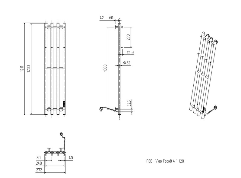 Электрический полотенцесушитель изготавливается по ТУ 3468¬001¬73870861¬2007 из высококачественной нержавеющей стали марки AISI 304, устанавливается на стене на специальных кронштейнах (входят в комплект к изделию) и подключается к источнику тока 220-240В, 50Гц. Длина шнура – 1,5м. Температура нагрева полотенцесушителя, допустимая санитарными правилами 65 С.