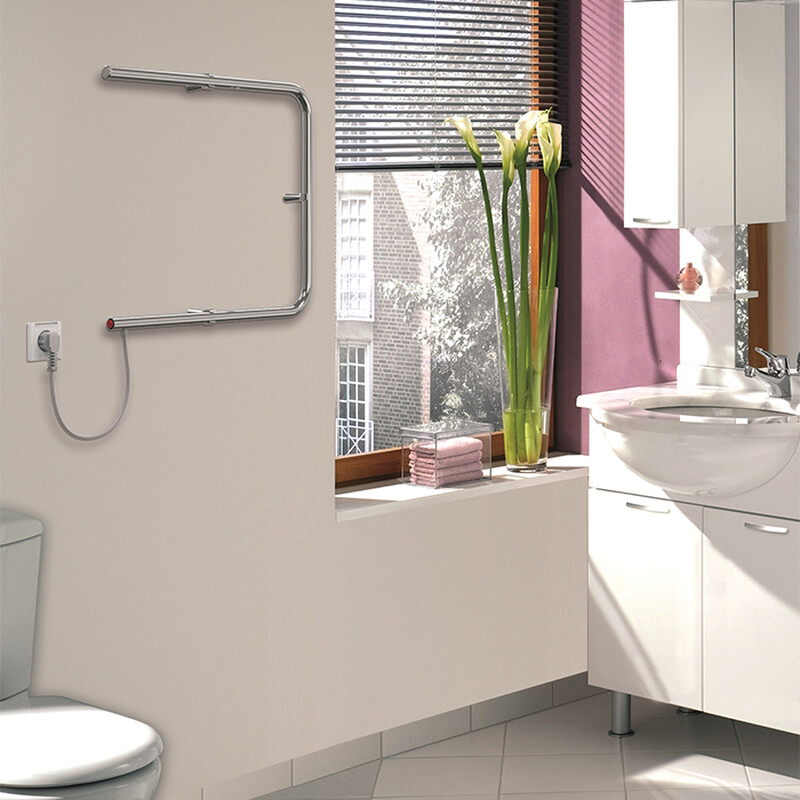 Электрический полотенцесушитель изготавливается по ТУ 3468¬001¬73870861¬2007 из высококачественной нержавеющей стали марки AISI 304, устанавливается на стене на специальных кронштейнах (входят в комплект к изделию) и подключается к источнику тока 220-240В, 50Гц. Длина шнура – 1,5м. Температура нагрева полотенцесушителя, допустимая санитарными правилами 65 С.