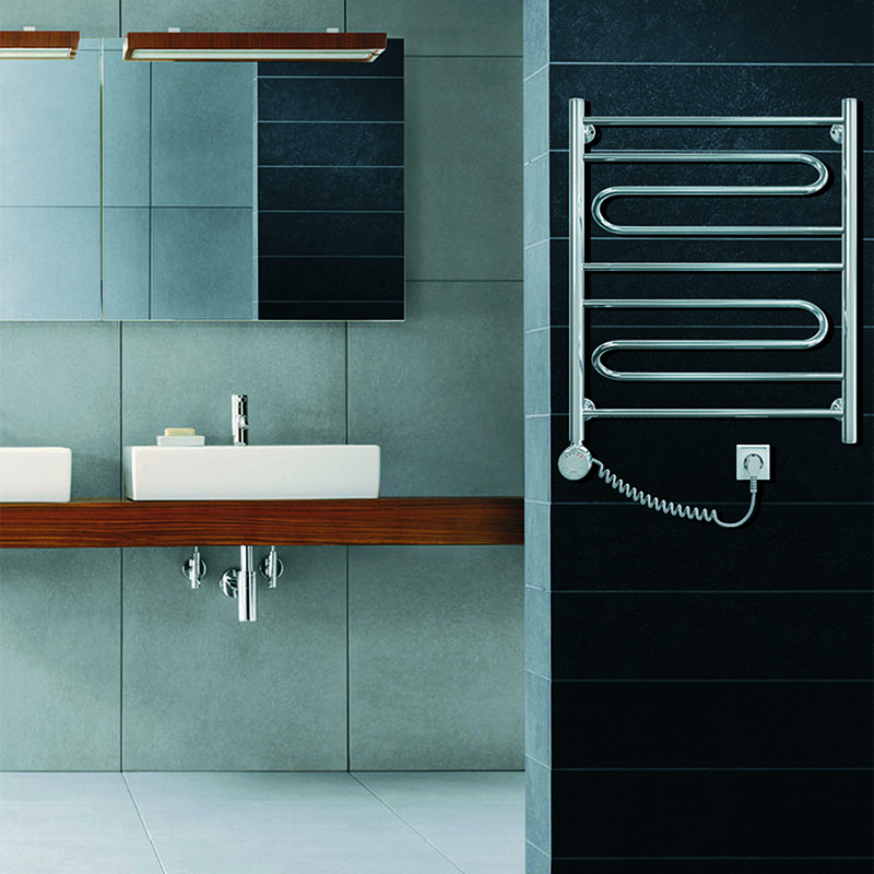 Электрический полотенцесушитель изготавливается по ТУ 3468¬001¬73870861¬2007 из высококачественной нержавеющей стали марки AISI 304, устанавливается на стене на специальных кронштейнах (входят в комплект к изделию) и подключается к источнику тока 220-240В, 50Гц. Длина шнура – 1,5м. Температура нагрева полотенцесушителя, допустимая санитарными правилами 65 С.