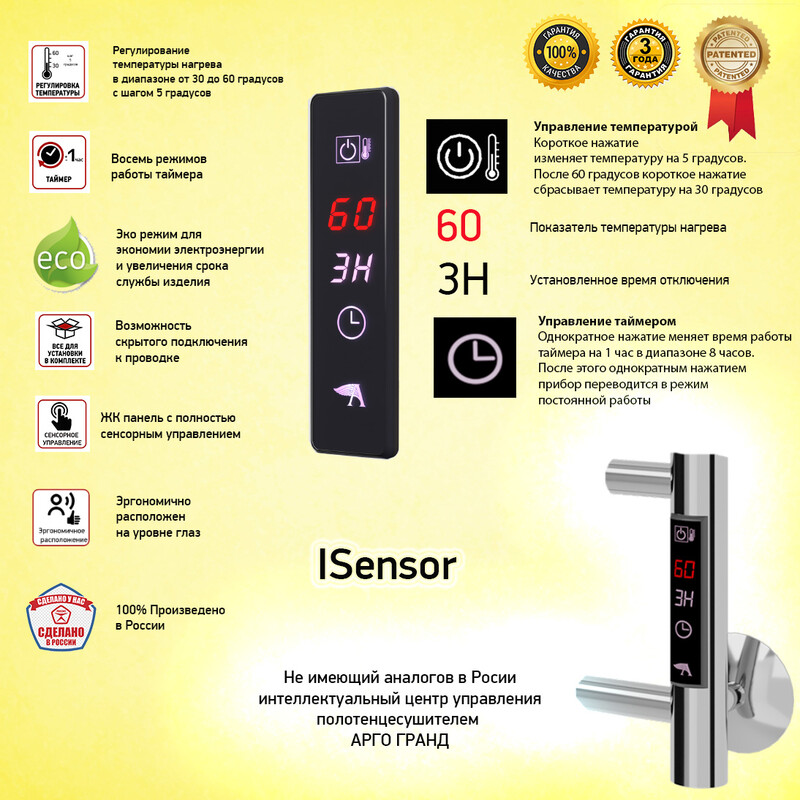 Полотенцесушитель электрический Соренто Гранд 50*60 140 вт.(К-ЖК панель, Справа ) 15645