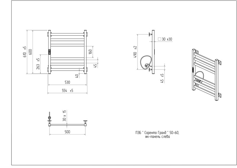 Полотенцесушитель электрический Соренто Гранд 50*60 140 вт.(К-ЖК панель, Справа, Сатин) 16864