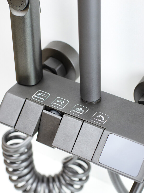 Душевая система SANTREK AQUA-1255 серии PRESTIGE сочетает в себе современный дизайн, функциональность и удобство эксплуатации. Короткий поворотный излив не занимает много места и в полной мере выполняет все возложенные на него функции. Плавный переключатель позволяет быстро и точно настроить температуру и напор воды. Душевая система SANTREK AQUA-1255 органично вписывается в любой интерьер санузла благодаря минималистичному дизайну и универсальному черному покрытию.