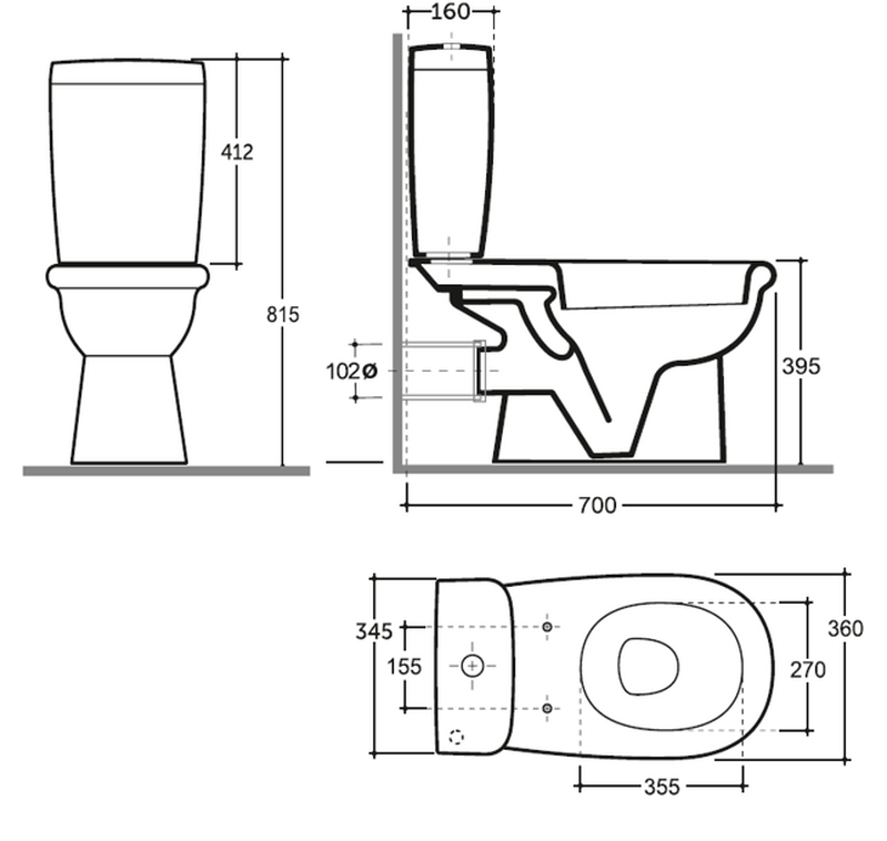 Ширина чаши унитаза мм