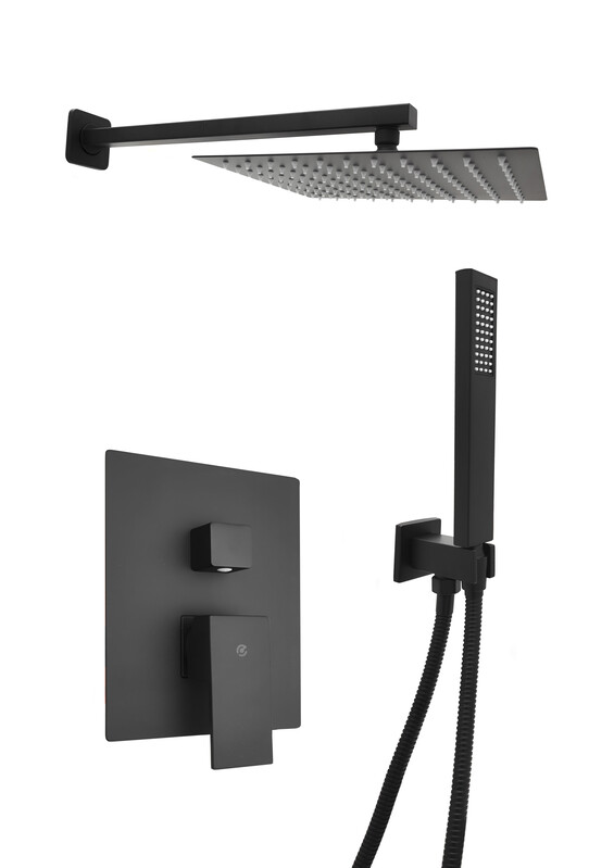 Смеситель Душ ВСТРАИВАЕМЫЙ SANTREK AQUA-1052 (SAP-1052) квадратная лейка, черный (троп лейка 25х25см)