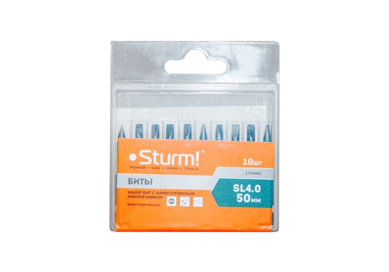 1270401 Биты SL4x50мм,сталь S2, С МАГНИТН. НАКОНЕЧНИКОМ,10 шт. в пластик.кейсе Sturm!