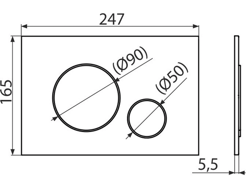 Клавиша слива для инсталляции. Устанавливается фронтально и состоит из двух клавиш управления. Экономичный режим, включаемый малой клавишей, уменьшает расход воды. Полный сливает всю воду из бачка и обеспечивает качественную очистку чаши.