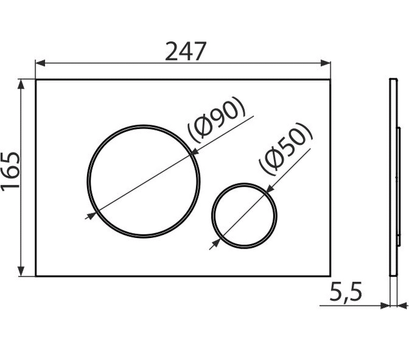 Клавиша слива для инсталляции. Устанавливается фронтально и состоит из двух клавиш управления. Экономичный режим, включаемый малой клавишей, уменьшает расход воды. Полный сливает всю воду из бачка и обеспечивает качественную очистку чаши.