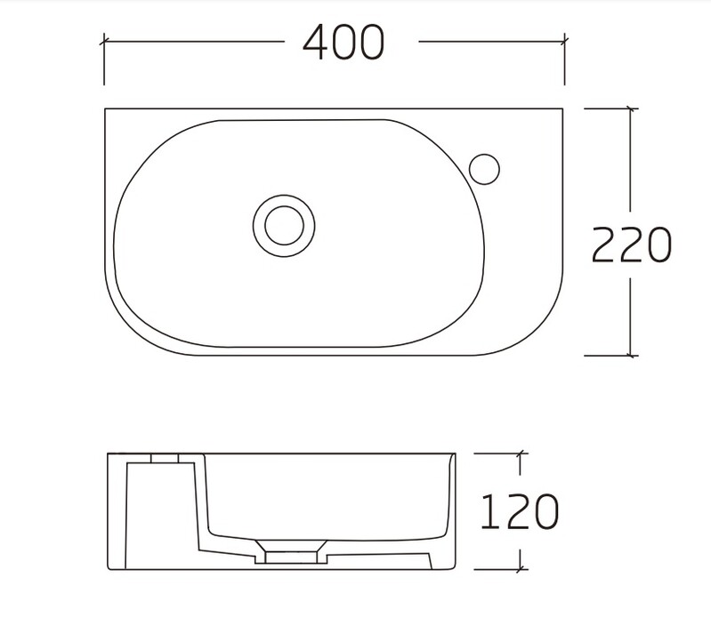 Раковина подвесная HOLLER K-6427L ЛЕВАЯ (400*220*120мм), белая (+ крепеж)