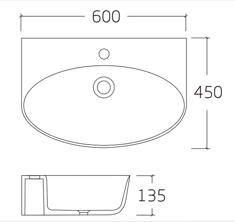 Раковина подвесная HOLLER K-6429-60 (600*450*135мм), белая (+ крепеж)