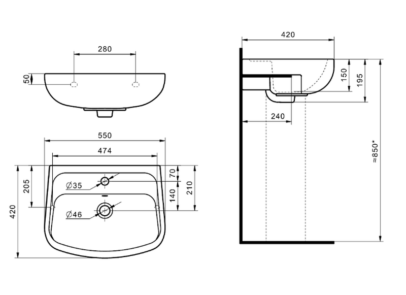 Умывальник "Лонги 55" с отв. г.Чебоксары
