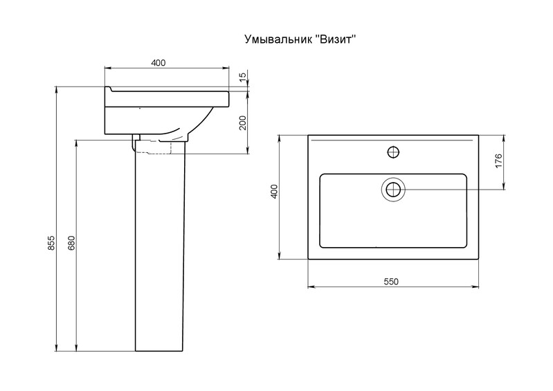 Размеры умывальника: 400x550x200 мм