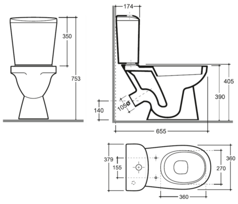 Унитаз высота: 75.00