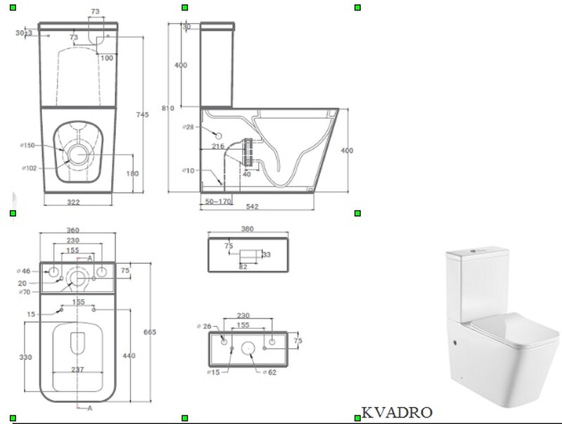 Унитаз напольный с бачком (сиденье дюропласт с микролифтом, арматура GEBERIT) KVADRO