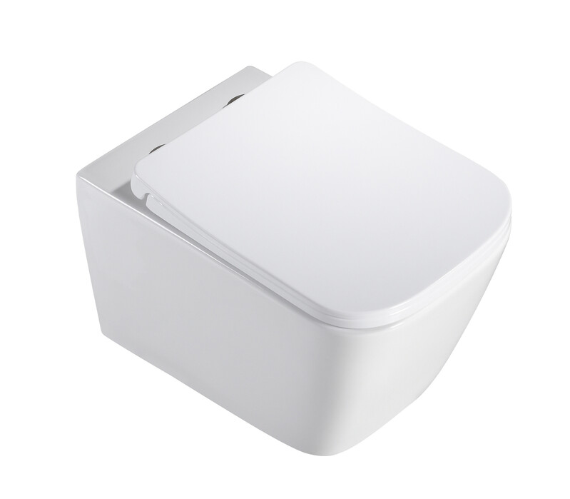 Унитаз подвесной безободковый HOLLER BLOCK (520*340*355мм, сиденье дюропласт, микролифт) белый