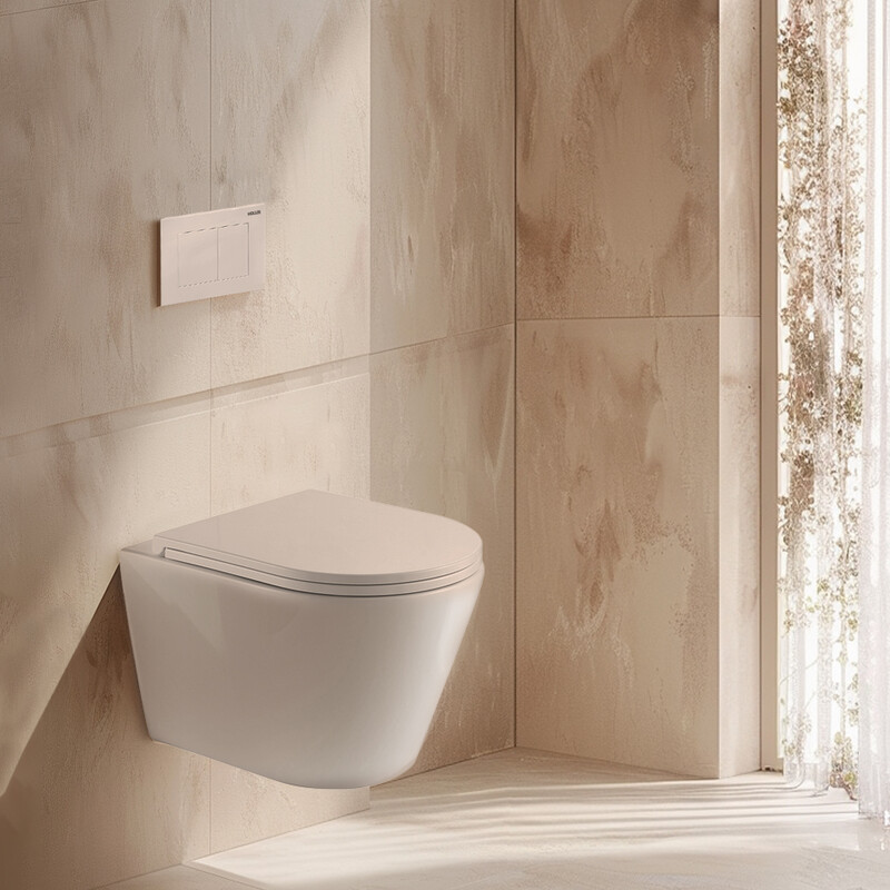 Унитаз подвесной безободковый для инсталяции HOLLER SHELL - это воплощение современного дизайна, передовых технологий и непревзойденного качества. Изготовлен из высококачественного керамического фарфора, обогащенного кварцем и полевым шпатом. Имеет гладкую и плотную структуру, что гарантирует низкий коэффициент водопоглощения и высокую гигиеничность.
