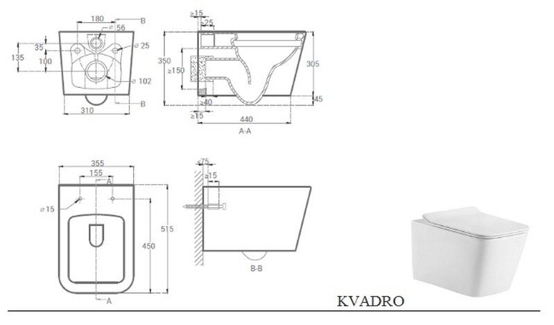 Унитаз подвесной (сиденье дюропласт с микролифтом) KVADRO