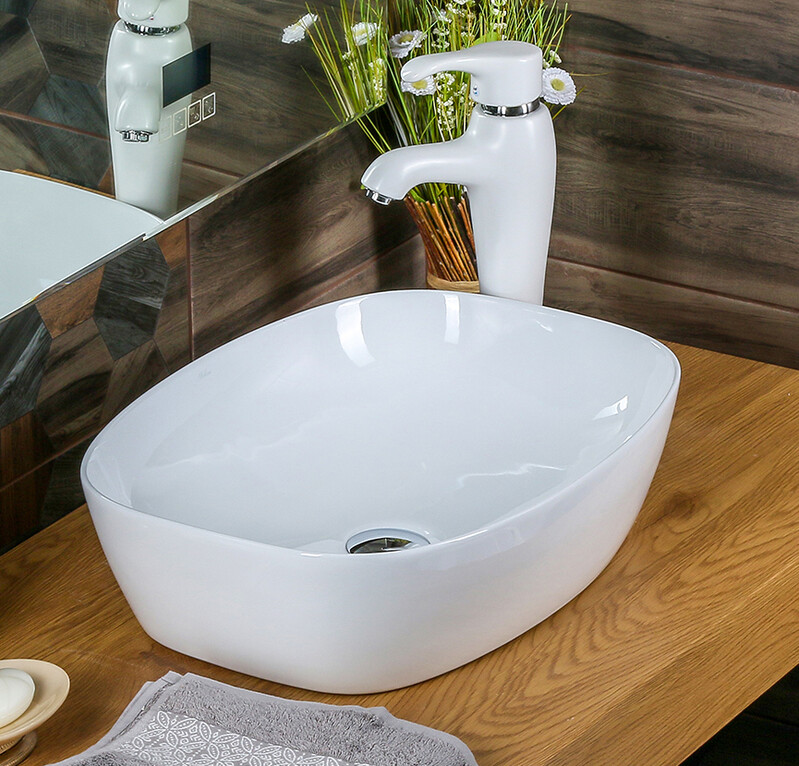 800-5006 Фигурный умывальник овальный накладной 590Х405Х145 MELANA
