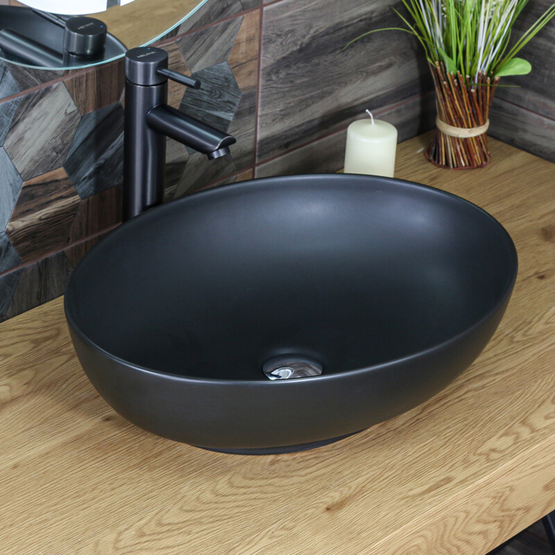 800-320316MB Фигурный умывальник накладной чёрный матовый 520х395х130 MELANA