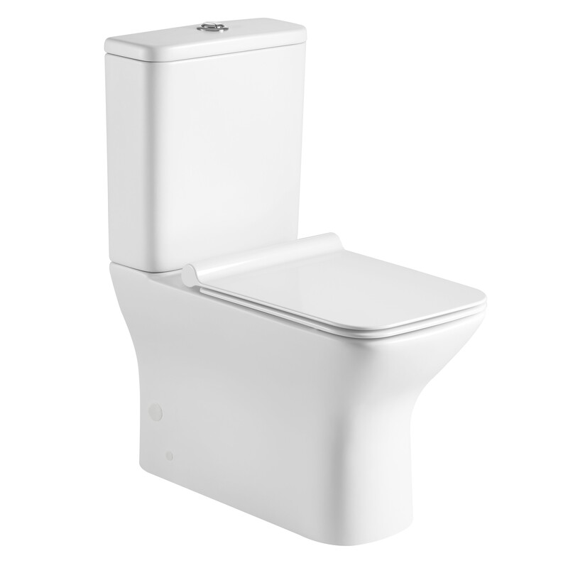 Унитаз-компакт безободковый HOLLER BOX (640*340*830мм, сиденье дюропласт с микролифтом, арматура 2-х режимная) (2 места) белый