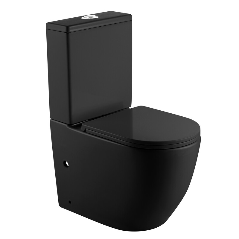 Унитаз-компакт безободковый HOLLER WEST MB (620*360*820мм, сиденье дюропласт с микролифтом, арматура 2-х режимная) (2 места) черный матовый