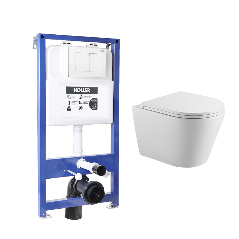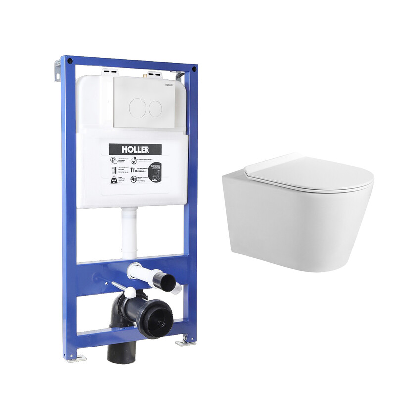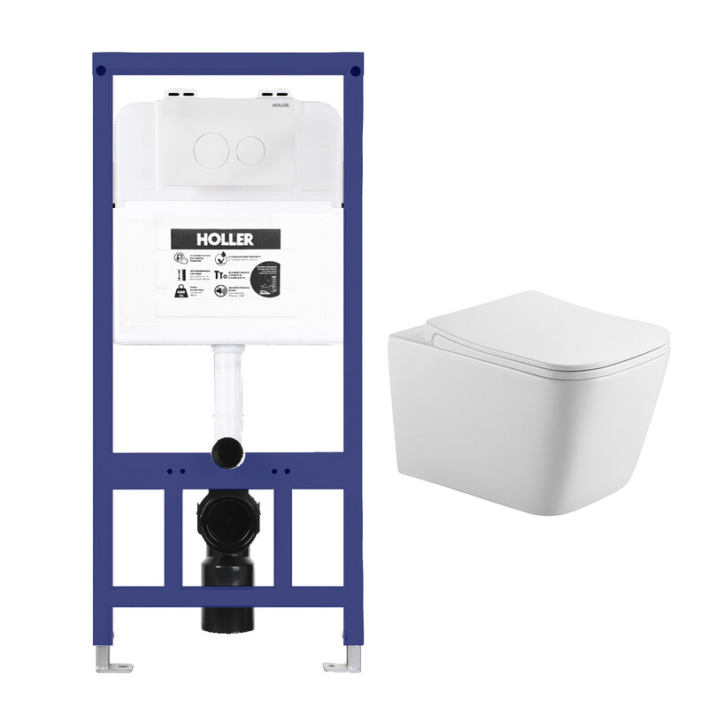 Инсталляция HOLLER MQ100 (комплект 3 в 1) + Унитаз подвесной безободковый HOLLER HOST, белый + Клавиша смыва HOLLER MWR, белый