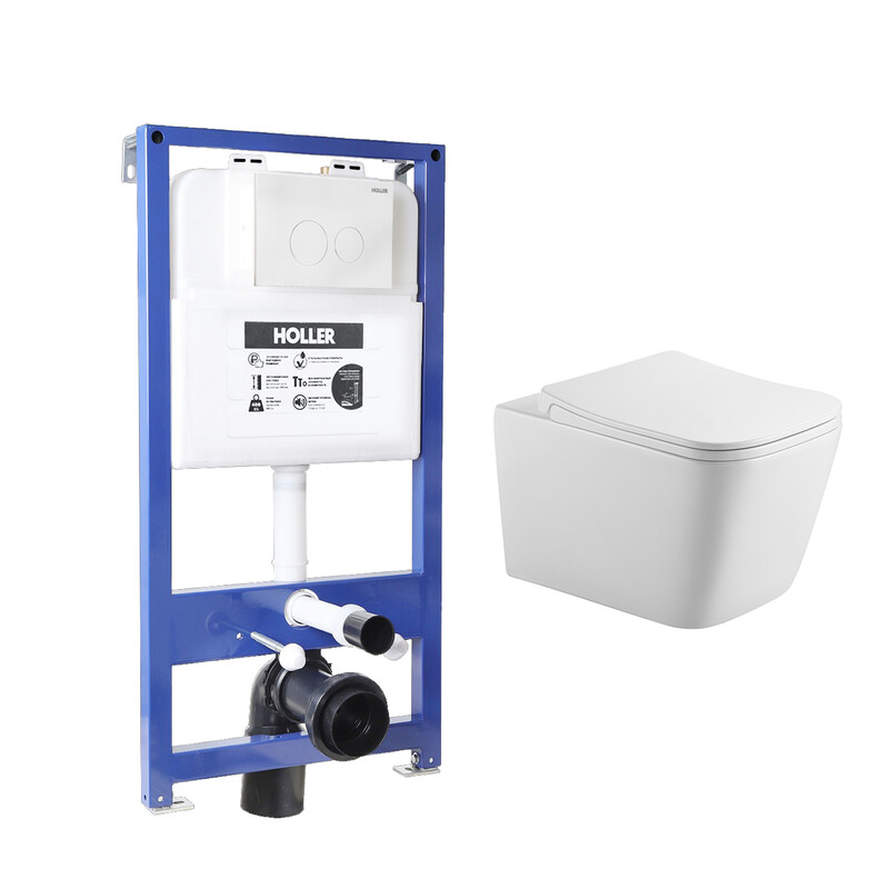 Инсталляция HOLLER MQ102 (комплект 3 в 1) + Унитаз подвесной безободковый HOLLER BLOCK, белый + Клавиша смыва HOLLER MWR, белый