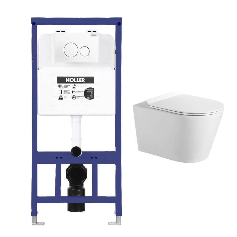 Инсталляция HOLLER MQ102 (комплект 3 в 1) + Унитаз подвесной безободковый HOLLER HOST MW,белый матовый + Клавиша смыва HOLLER MWHR, матовый белый