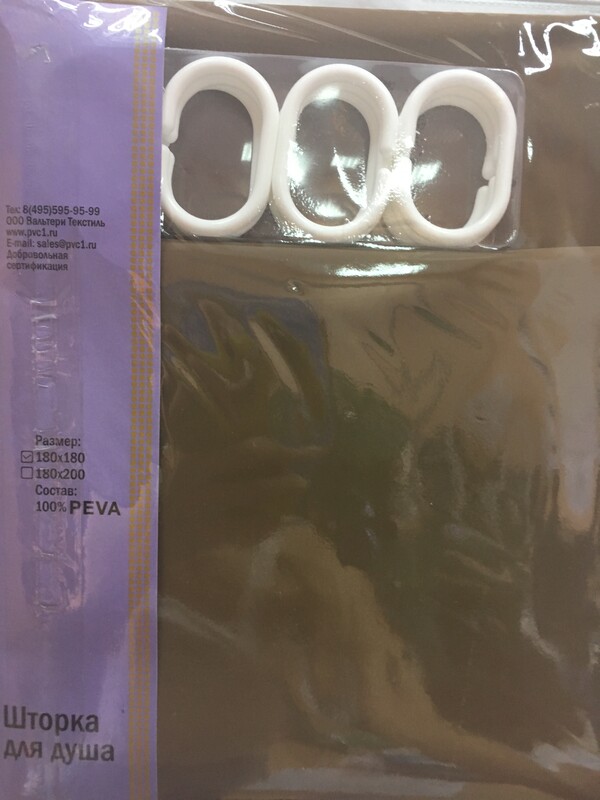 Штора для ванной комнаты из водонепроницаемого материала с кольцами. Края шторы обработаны термическим шовом.