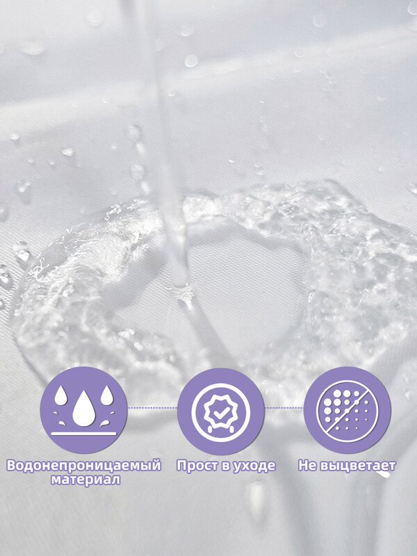 Штора предназначена для оборудования ванной комнаты. Водоотталкивающая ткань позволяет использовать штору в качестве надежного заслона, благодаря которому капли воды не попадают на пол и мебель. Интересная расцветка придаст уникальность дизайну ванной комнаты.
