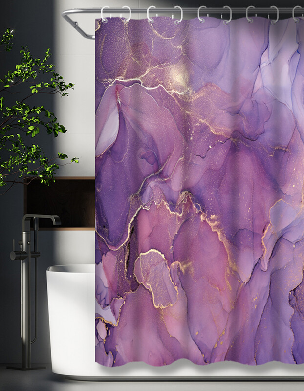 Штора д/ванн SANTREK HOME 180х180 Polyester с утяжелителем НС1122 с кольцами МРАМОР ФИОЛЕТОВЫЙ -2 (Сиреневый)