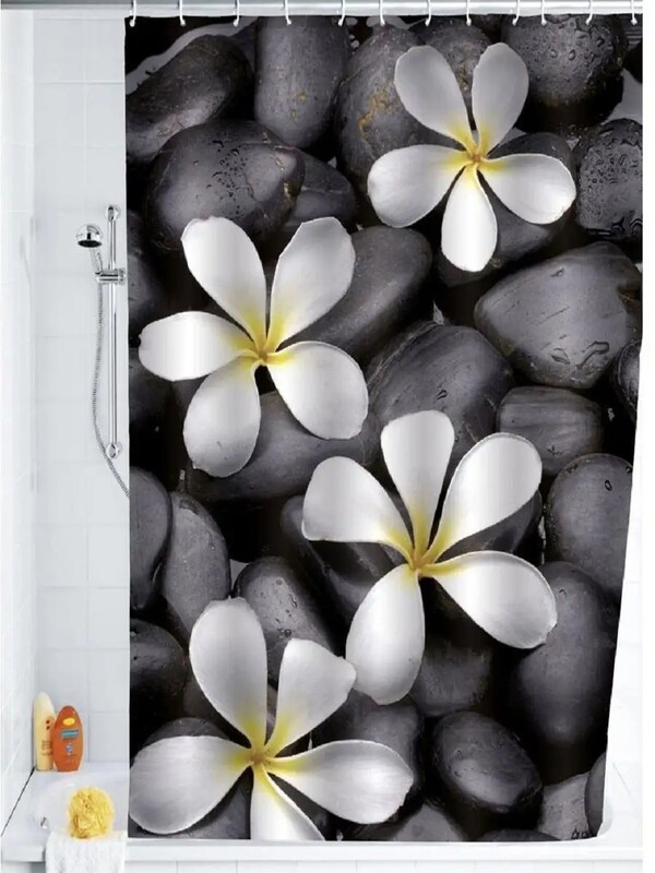 Штора д/ван "ZALEL" ФОТОПРИНТ 180х180 YGL Z-003 Stone Flora сер/черн/бел с кольцами ***