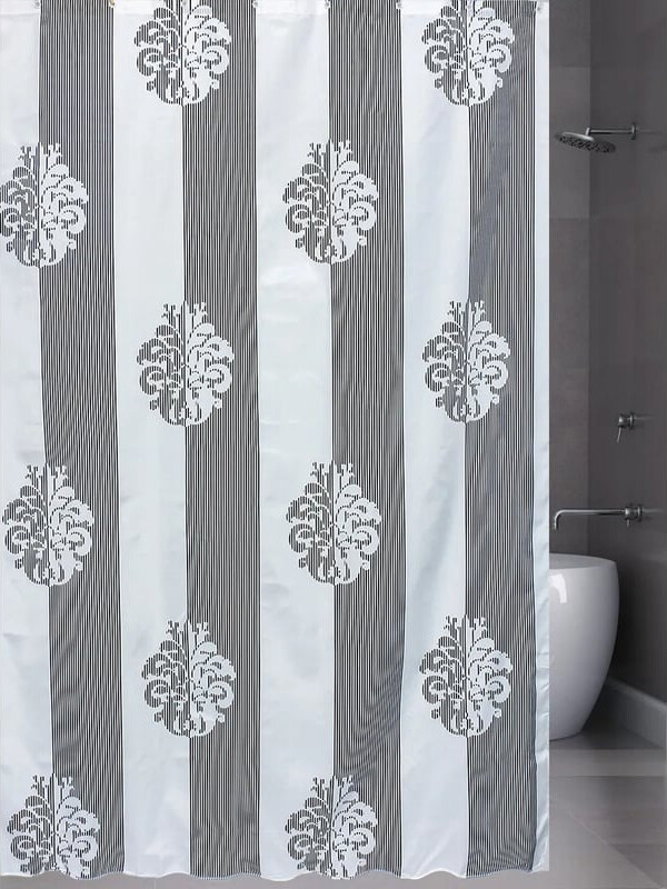 BATH PLUS. Штора для ванн BATH 180х180 (Damask Strtiipe)белый/черный (21217/8-P) (14)