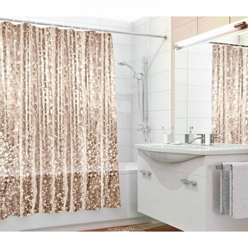 Штора д/ван "ZALEL 3D с кольцами 180х180 коричневый, состав 100% EVA