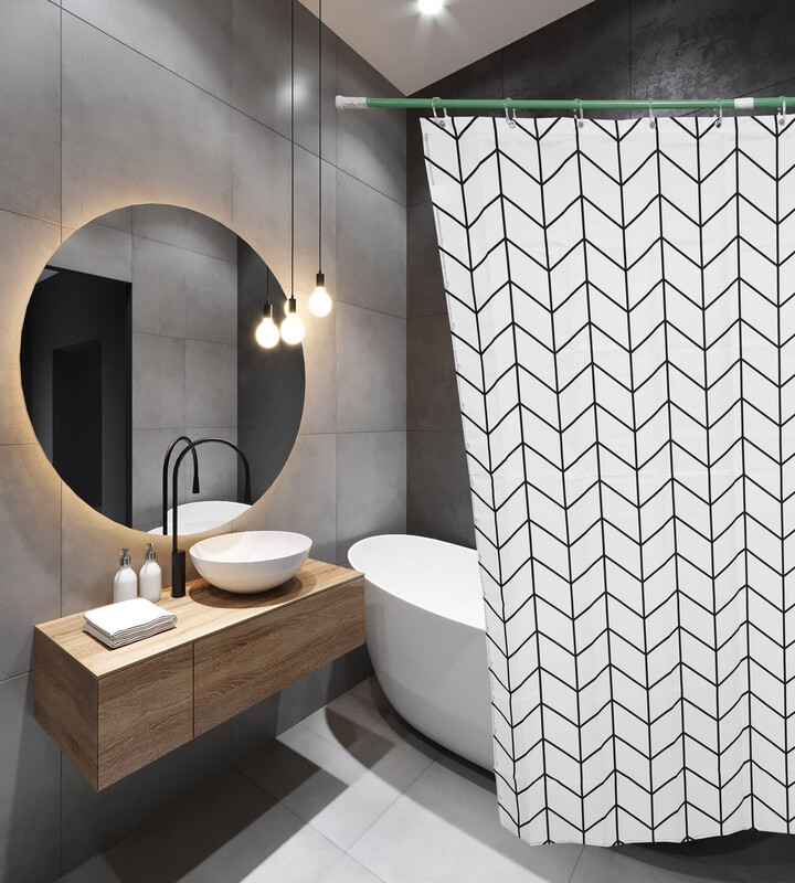 Штора д/ванн SANTREK HOME 180х180 ФОТОПРИНТ Polyester 20106 с кольцами Квадрат чёрный (П213)