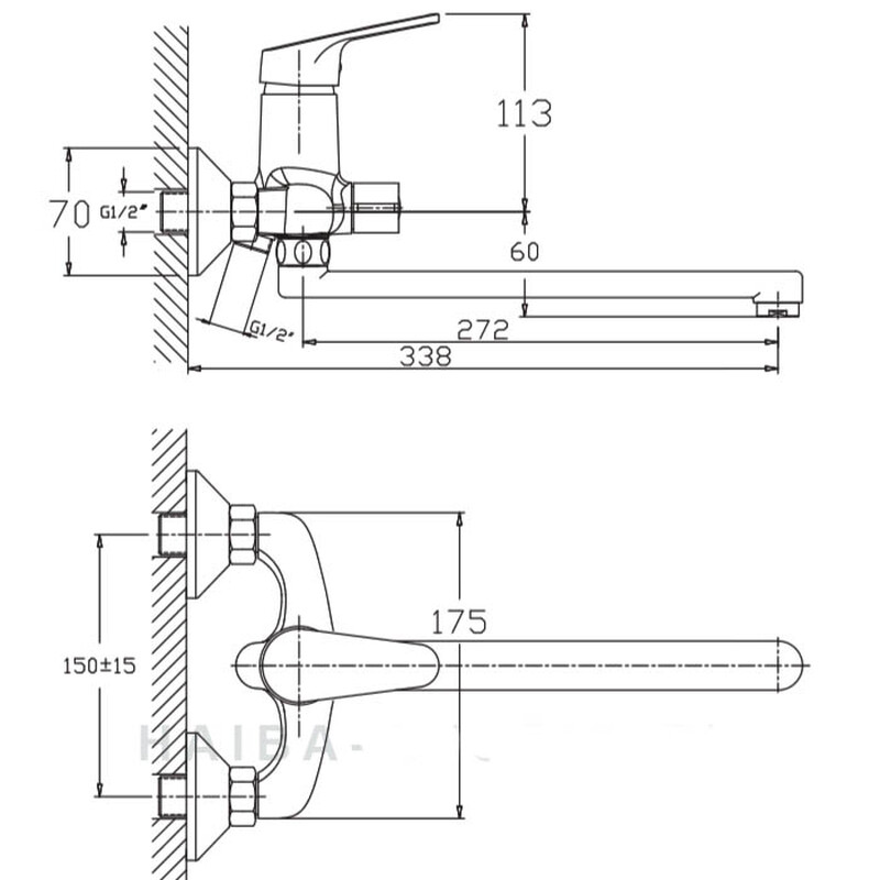 2216HB Смеситель Ванна HAIBA шар. d-35 длинный излив переключатель в корпусе хром