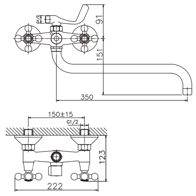Диаметр декоративных чашек 70 мм. Душевой гарнитур в комплекте. Межосевое расстояние (расстояние между выходом горячей и холодной трубы) 150 мм. Данное расстояние изменяется за счет входящих в комплект эксцентриков на 10 мм в большую или меньшую стороны.