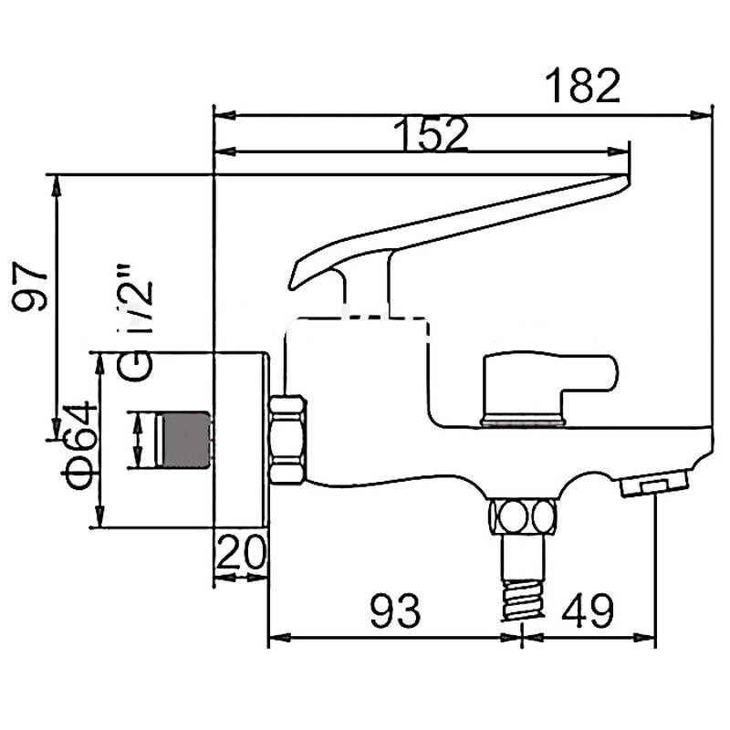 3274В Смеситель Ванна LEDEME кор нос, дивертор в корпусе (черный/хром)