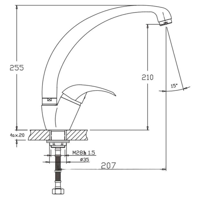 Смеситель для кухни бренда Haiba. Изготовлен из латуни. Картридж 35 мм. Укомплектован аэратором. Гибкая подводка 40 см. С поворотным изливом.
