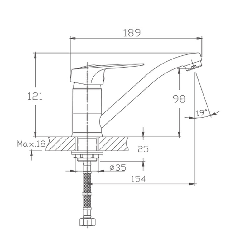 Смеситель для кухни бренда Haiba. Изготовлен из латуни. Картридж 35 мм. Укомплектован аэратором. Гибкая подводка 40 см. С поворотным изливом.