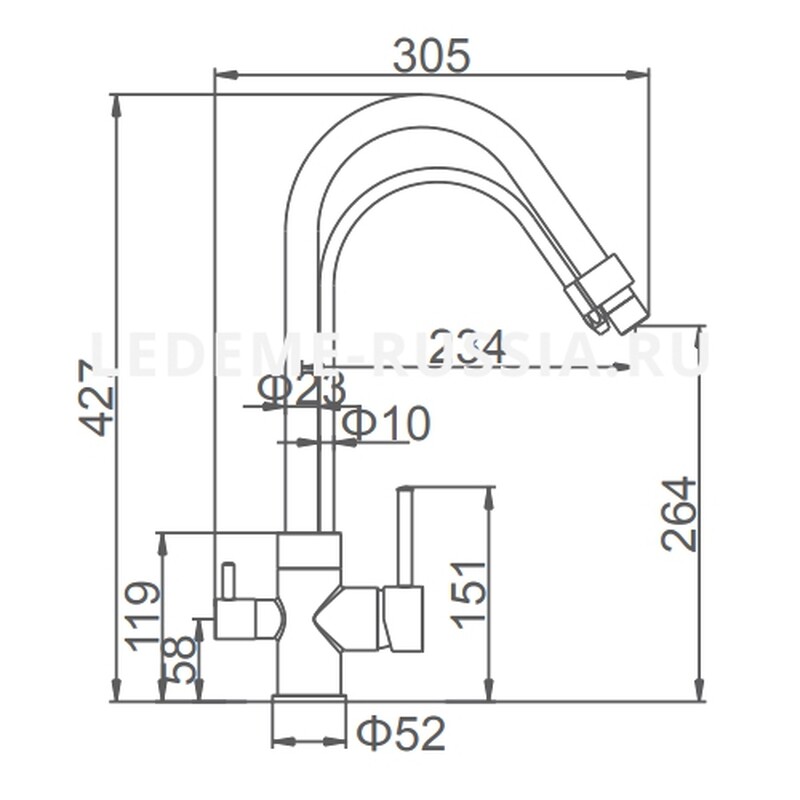 4755-2 Смеситель Кухня LEDEME d-35 с выходом для питьевой воды (черный+хром)