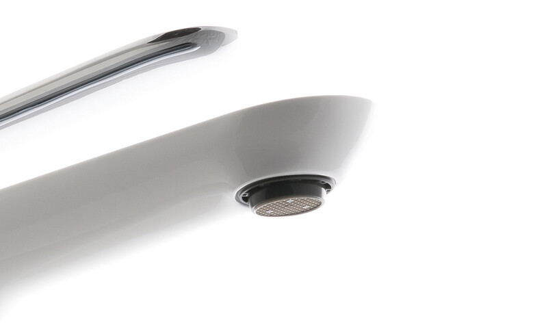 MELANGE - серия смесителей с изысканным дизайном в серебристо-белых тонах.